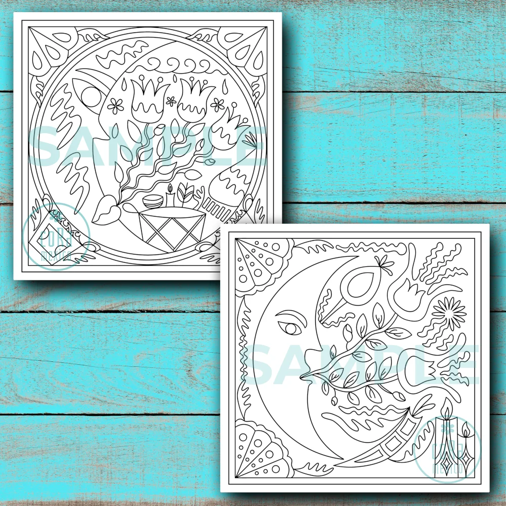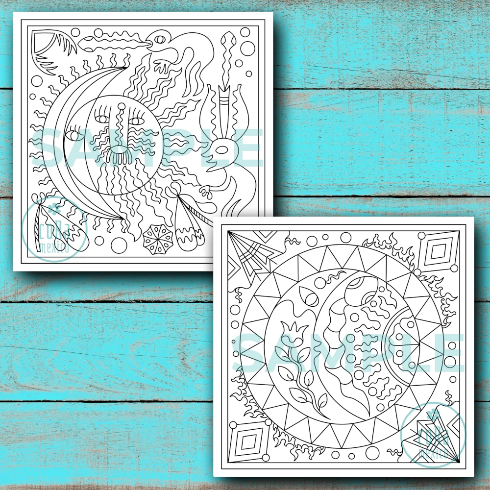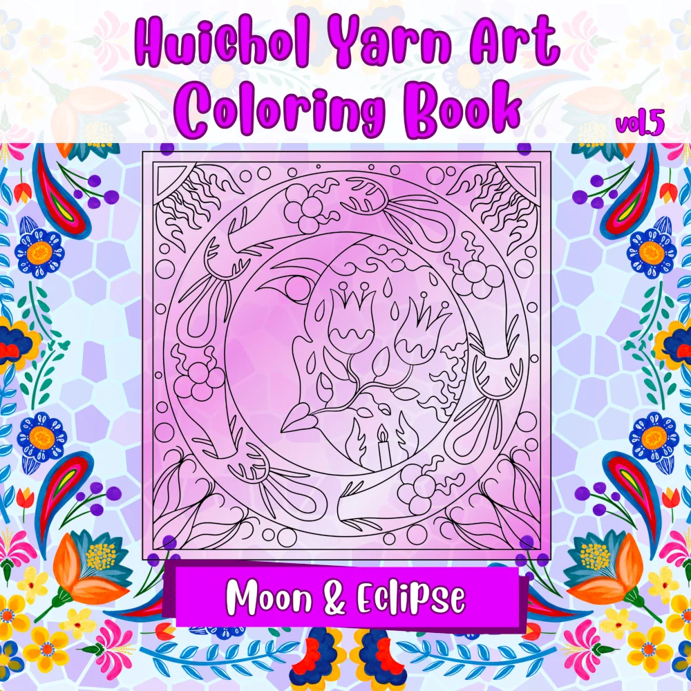 This hand-drawn printable coloring book features Huichol yarn art designs of the Moon & Eclipse — powerful symbols of nature and spirituality. Each page comes in a clean black outline, ready for you to color and relax.