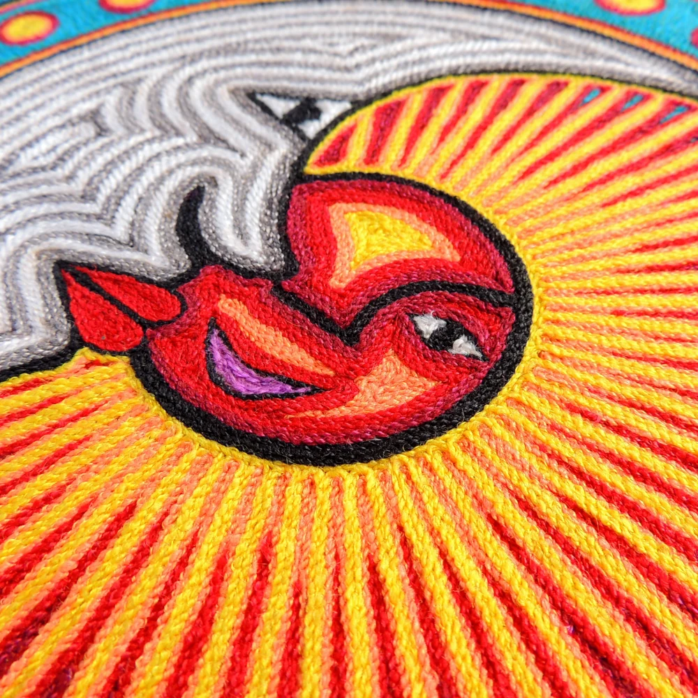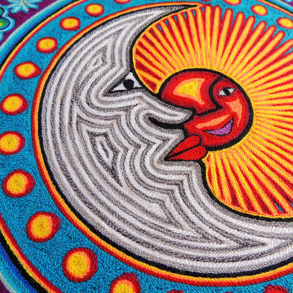 🌞Huichol Yarn Painting – Sun & Moon Eclipse Nierika with Peyote