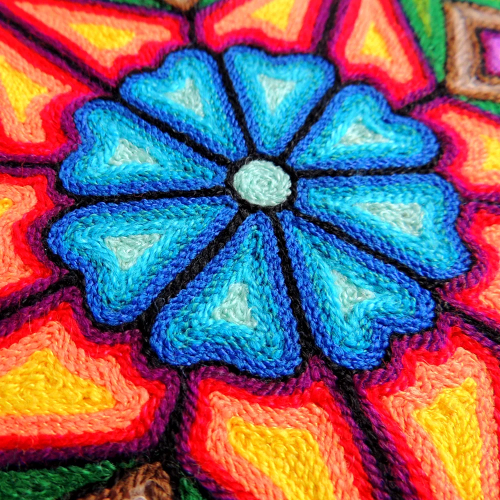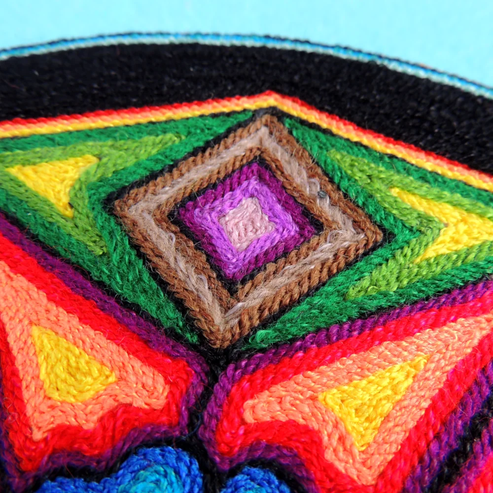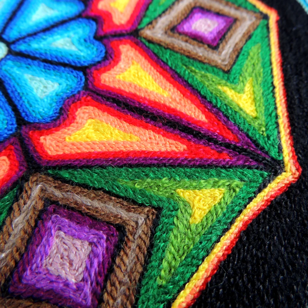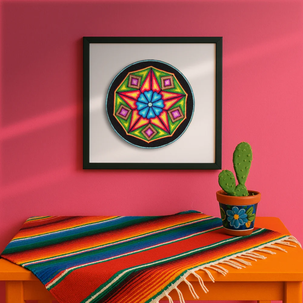 ⭐Huichol Yarn Painting – Peyote and Ojo de Dios Nierika (20cm) 🌸