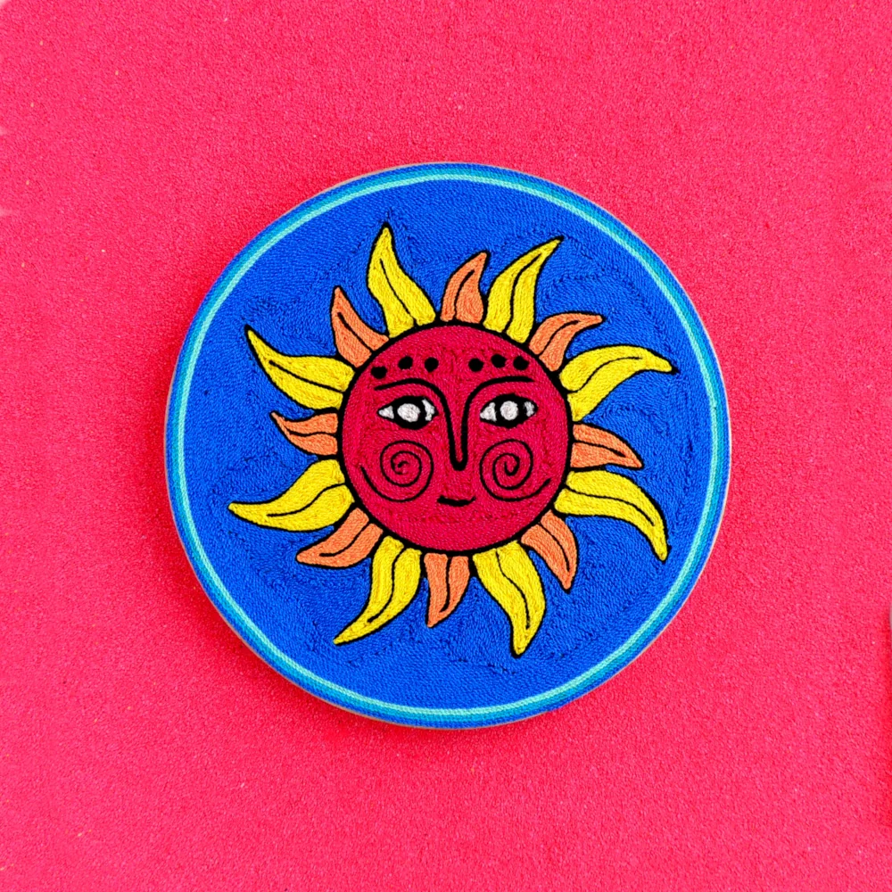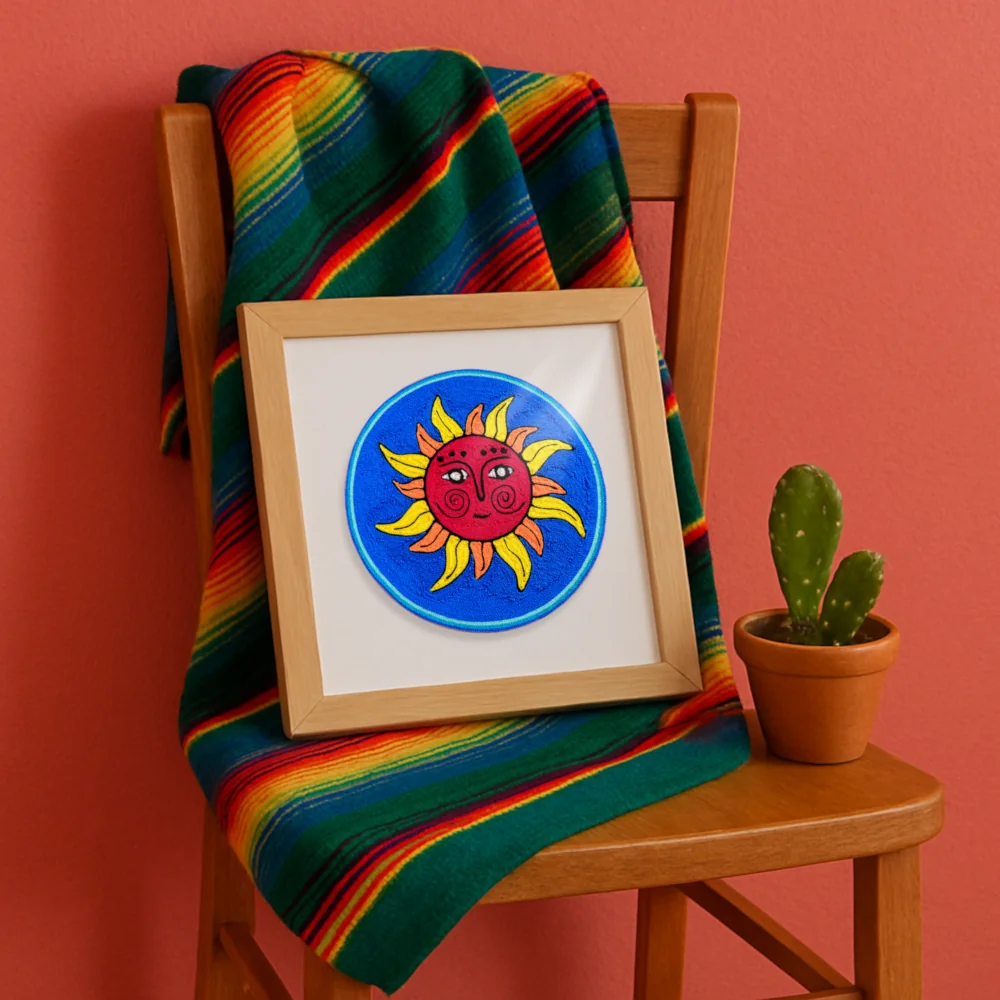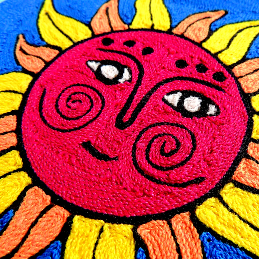 🌞 Huichol Yarn Painting – Sun God Nierika