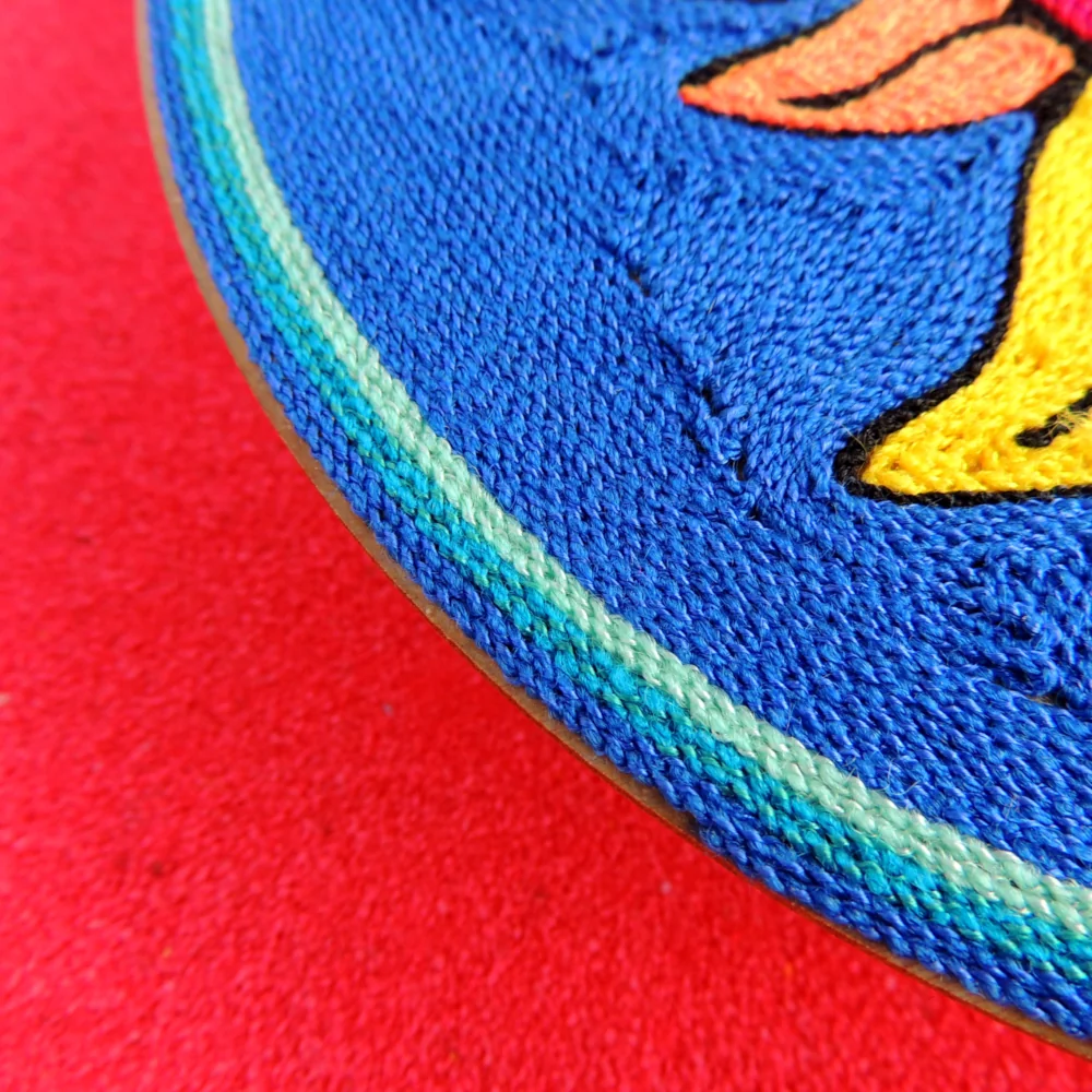 - Handmade Huichol yarn painting crafted with yarn pressed into natural beeswax