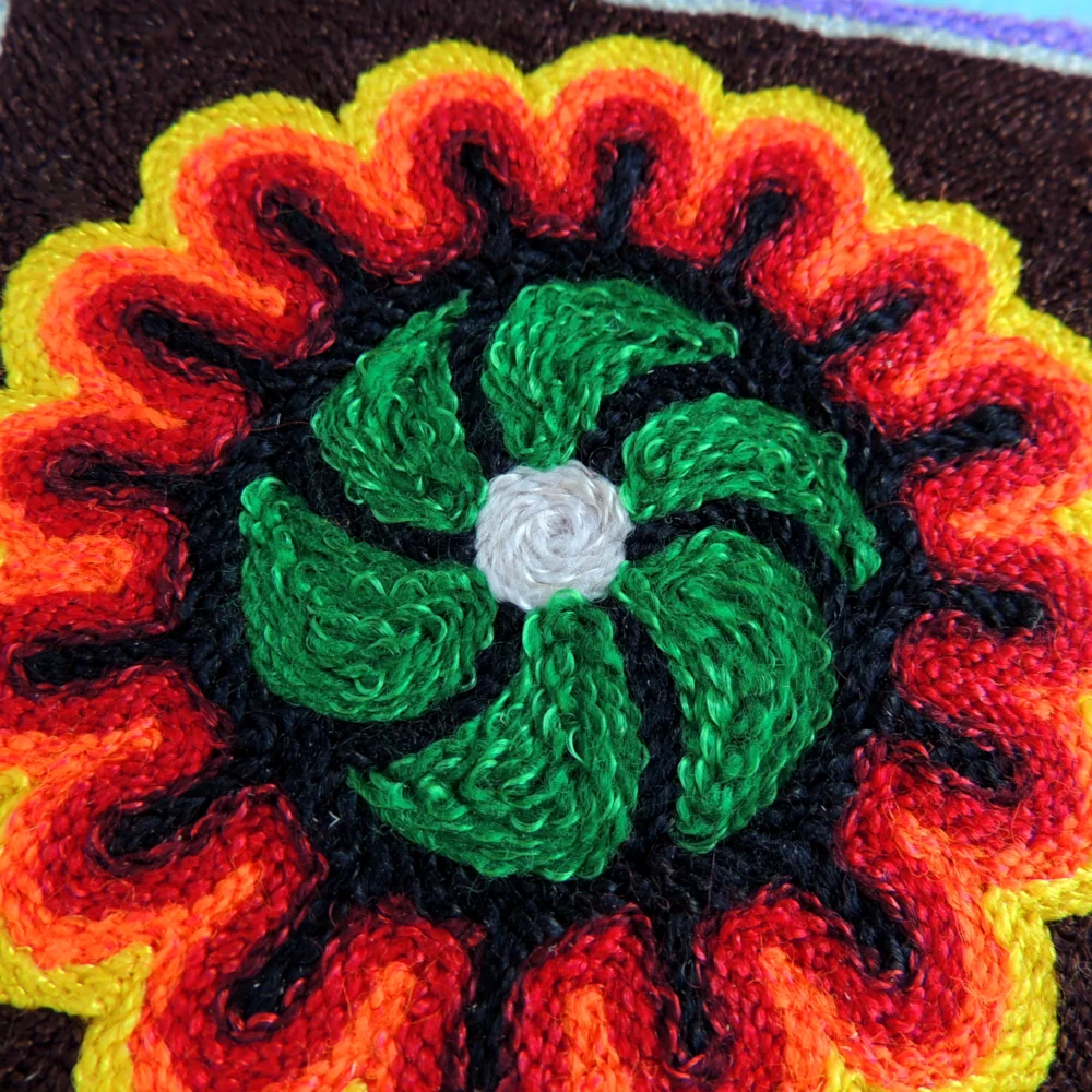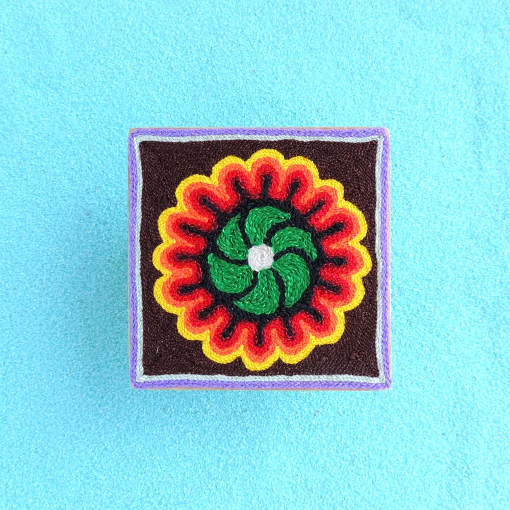 🌵Huichol Yarn Painting – Peyote Flower Nierika
