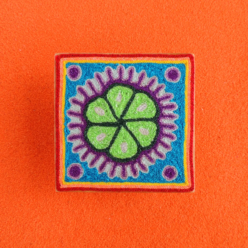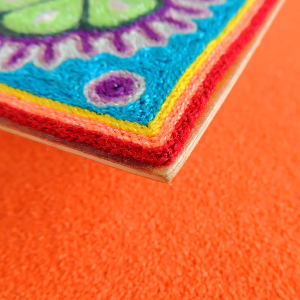 • Handmade Huichol yarn painting crafted using the traditional yarn-and-wax technique