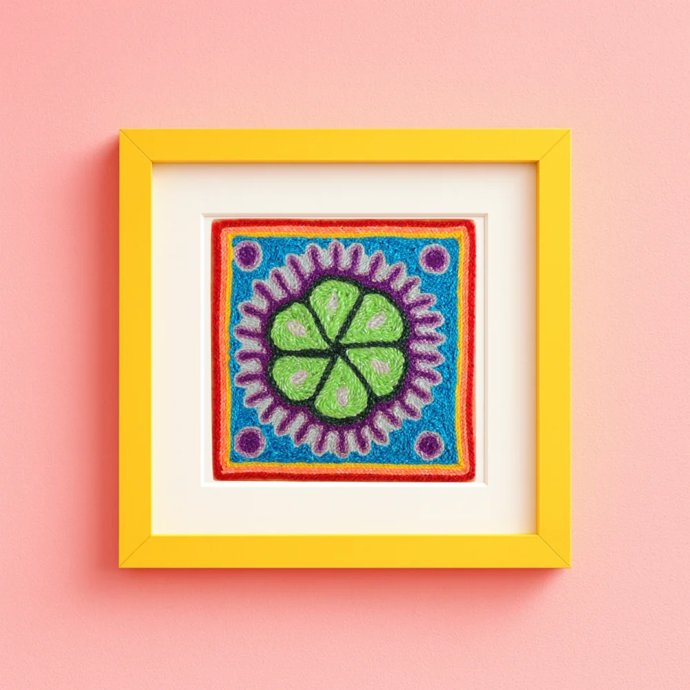 🌵Huichol Yarn Painting – Peyote Flower Nierika