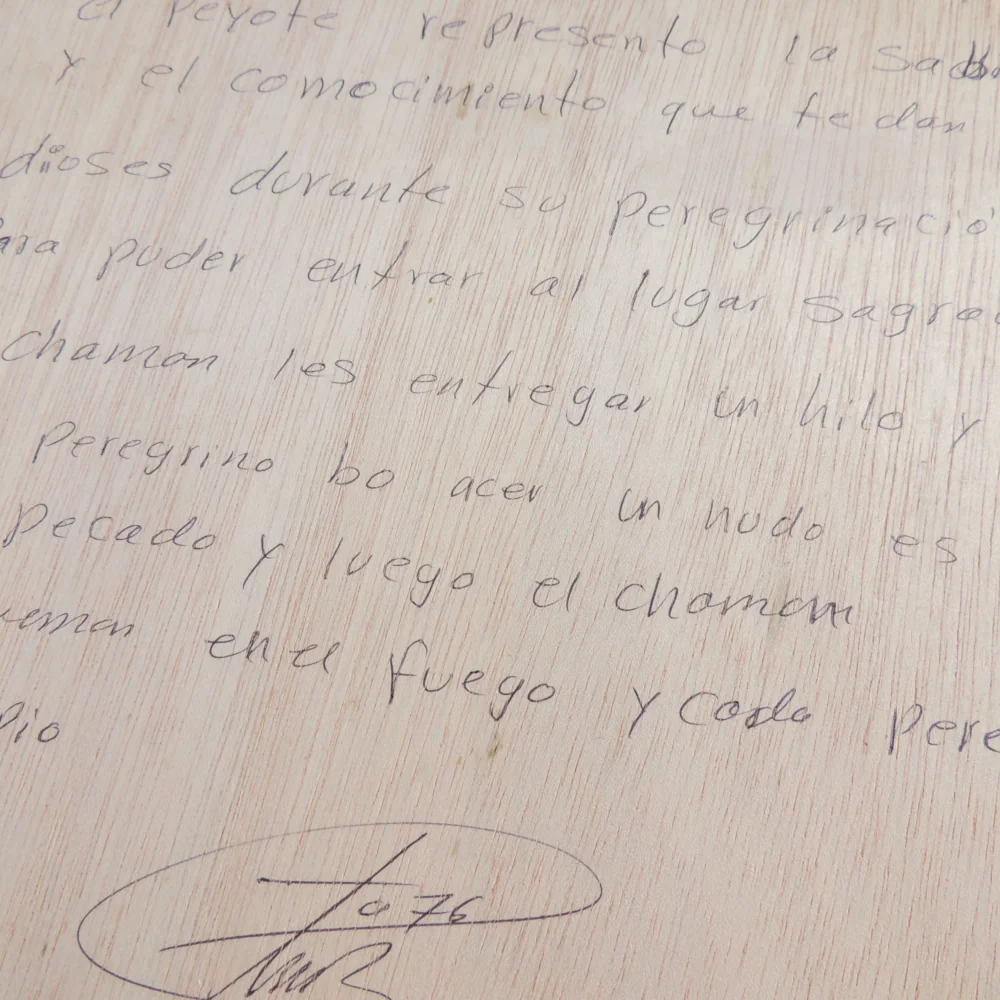 “Peyote represents the wisdom and knowledge bestowed by the gods on a pilgrimage to a sacred place. During this ritual, the shaman gives each pilgrim a string. For every sin, a knot is tied. When the shaman burns these strings in the fire, the pilgrims are cleansed and begin anew.”